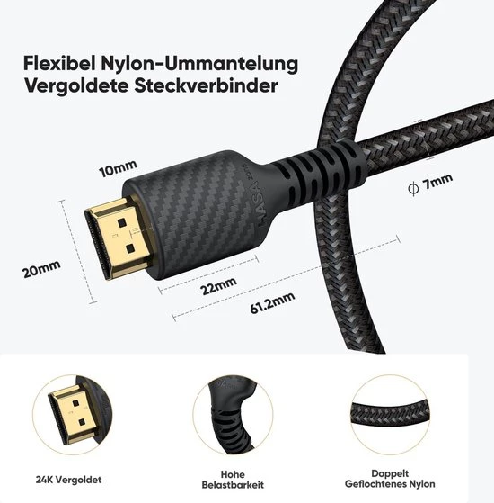 Advantages of this HDMI cable:This HDMI 2.1 cable is the perfect choice for gamers, movie buffs, and anyone looking for the best picture and sound quality. Whether you have an 8K TV or want to connect a gaming console, this cable ensures a seamless connection and optimal performance.