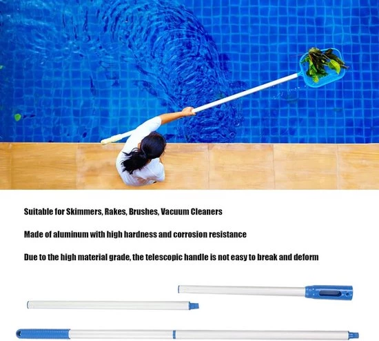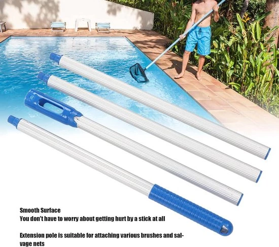 Using this telescopic pool pole offers many advantages. Thanks to its high-quality materials and ergonomic design, cleaning your pool becomes more efficient and easier. The non-slip grip and adjustable length allow you to effortlessly use various pool accessories and keep your pool clean and sparkling.
