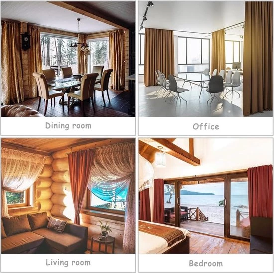Gebruiksvriendelijk: Er zijn twee installatiemethoden. Ten eerste kunt u verschillende bevestigingsmethoden kiezen, afhankelijk van uw voorkeuren, om het mooiste en meest praktische effect met uw gordijnen te bereiken. Ten tweede kunt u de gordijnbanden met de meegeleverde haken aan de muur bevestigen en vervolgens de gordijnen met de gordijnkoorden ophangen. Gordijnen ophangen is eenvoudig en gemakkelijk.