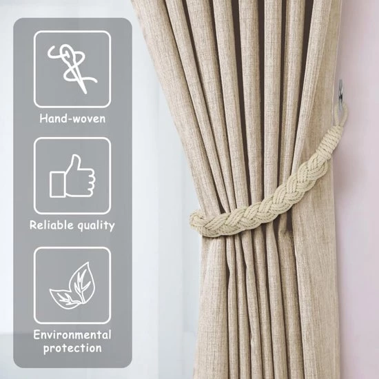 Hoogwaardig materiaal: Deze gordijnband is handgeweven met hoogwaardig katoenen koord, dat comfortabel, glad en zacht aanvoelt. Het weefsel is verfijnd en raakt niet in de knoop. Het beschadigt uw gordijnen niet en is een perfecte decoratie voor uw huis.