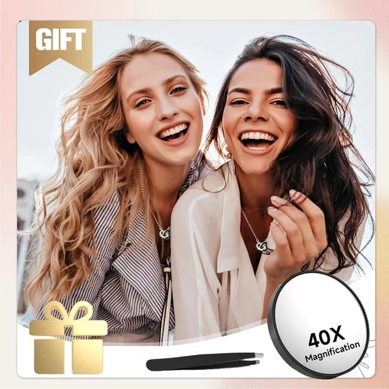 Deze spiegel met 40x vergroting biedt een indrukwekkende vergroting, ideaal voor het nauwkeurig epileren van wenkbrauwen, het controleren van make-up en het verwijderen van oneffenheden. Perfect voor close-ups van kleine details.