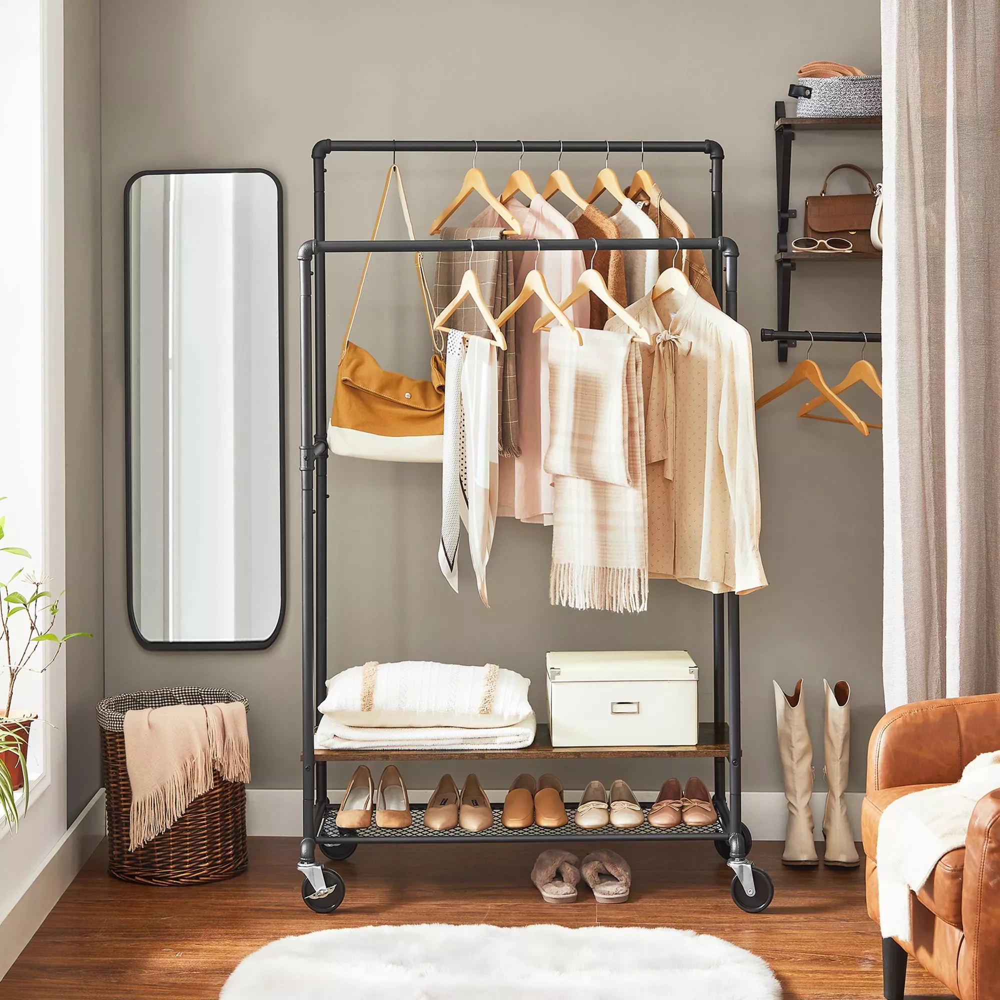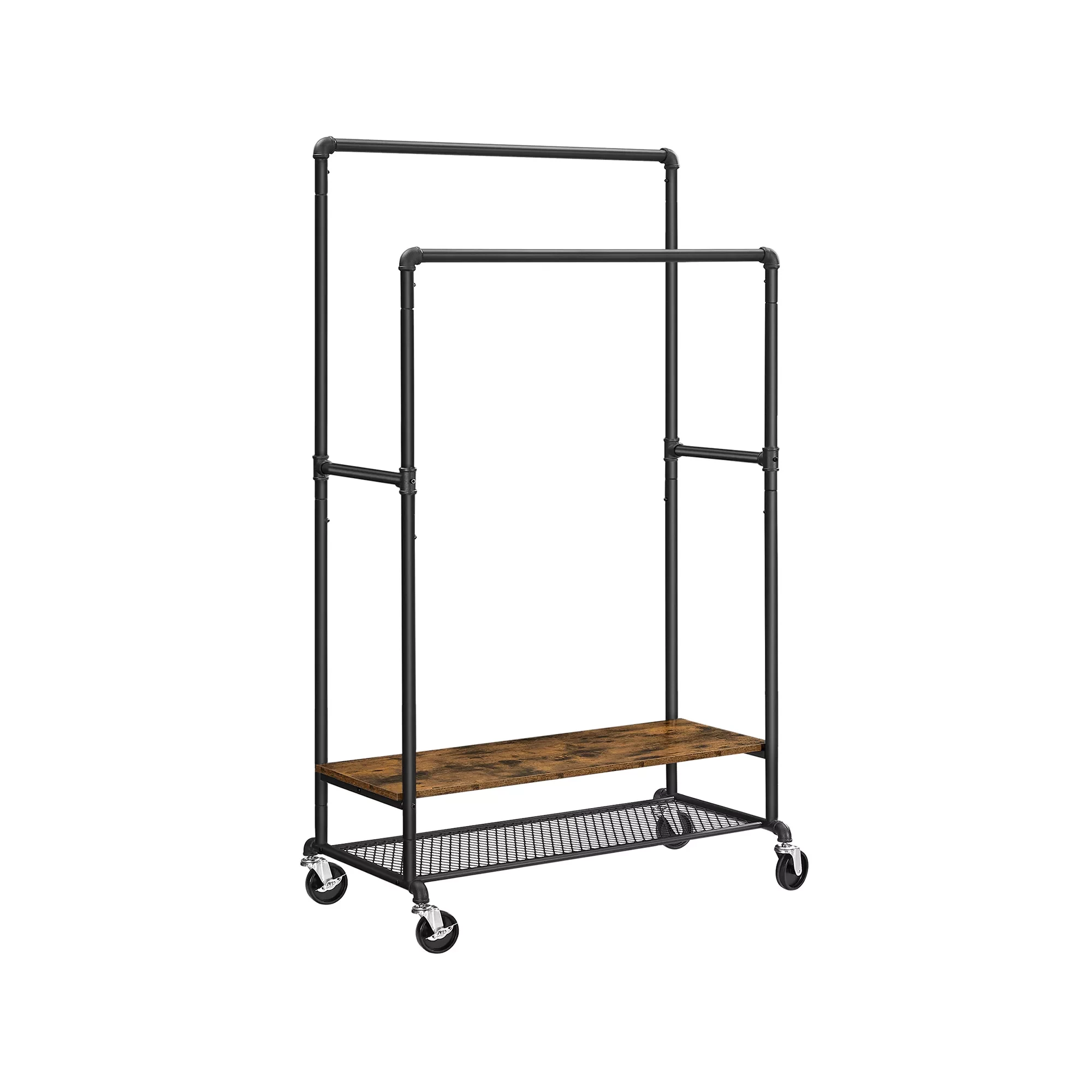 In And OutdoorMatch Kledingstandaard Esperanza - Met 2 Kledingstangen - Kapstok - Met 2 Planken - Met Wielen - Industrieel Design - Vintage Bruin/Zwart (63942)