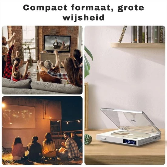 De transparante, veerbelaste klep is zowel praktisch als stijlvol. Met een simpele druk op de knop opent de klep automatisch, waardoor cd's niet vast komen te zitten. Dit gebruiksvriendelijke ontwerp maakt het laden en lossen van cd's een stuk eenvoudiger. Bovendien heeft de speler een strakke, witte behuizing die er elegant en minimalistisch uitziet en bijdraagt aan de moderne uitstraling.