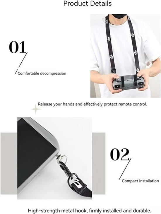 Ideaal accessoire - Hang de afstandsbediening om je nek met deze nekriem, zodat je je handen vrij hebt en het makkelijker en veiliger wordt om foto's te maken of te streamen. Je hoeft je geen zorgen meer te maken dat je je smartcontroller laat vallen of dat je handen overbelast raken tijdens het filmen.