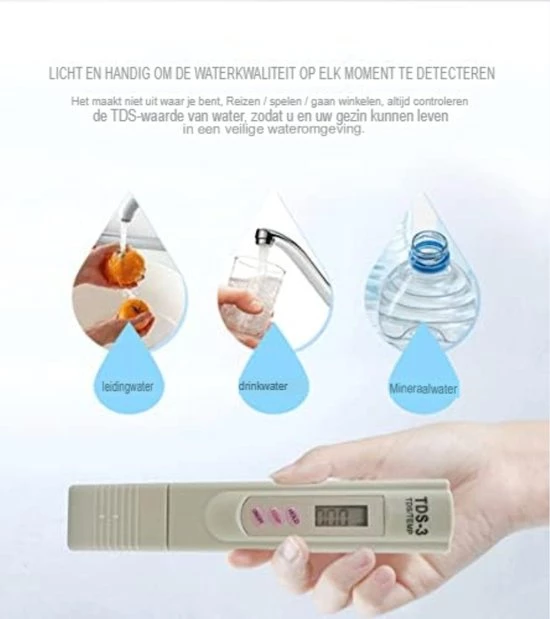 Breed scala aan toepassingen: Dit product kan worden gebruikt voor waterkwaliteitscontrole van waterzuiveraars en -filters, voedingsmiddelen (groenten, fruit) en dranken, zwembaden en spa's, aquaria, hydrocultuur, enz.