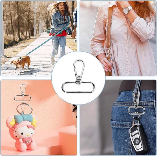 Deze set van 20 karabijnhaken van 38 mm biedt een ideale oplossing voor al je doe-het-zelfprojecten, knutselprojecten en tasaccessoires. Dankzij de 360° draaibare verbinding bevestig je deze karabijnhaken eenvoudig aan tassen, riemen of lanyards, waardoor ze perfect zijn voor zowel creatieve als praktische toepassingen.