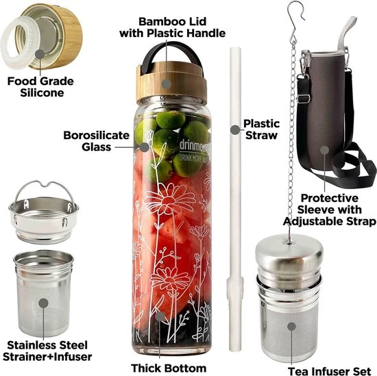 De 1000ml glazen waterfles die je altijd nodig hebt: een theezeefje, koffiemok, sportwaterfles en meer