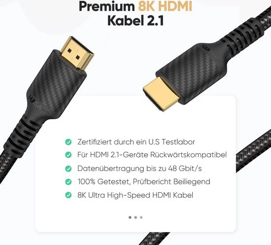 Advantages of this HDMI cable:This HDMI 2.1 cable is the perfect choice for gamers, movie buffs, and anyone looking for the best picture and sound quality. Whether you have an 8K TV or want to connect a gaming console, this cable ensures a seamless connection and optimal performance.