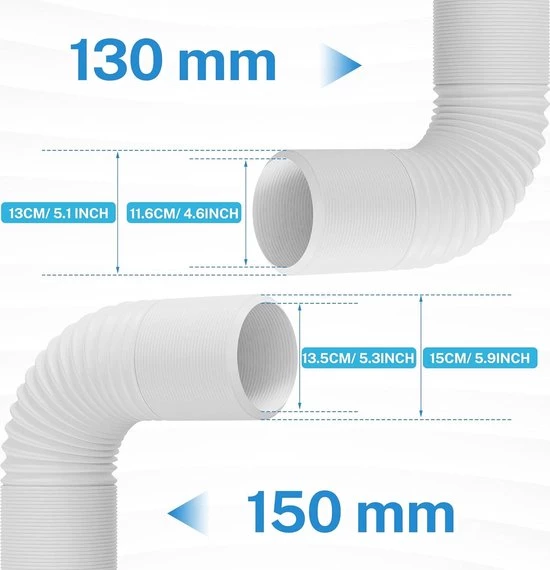 Deze airconditioningslang is perfect geschikt voor airconditioninguitgangen met een diameter van 150 mm en biedt daardoor veelzijdigheid en compatibiliteit met de meeste gangbare draagbare airconditionermodellen.