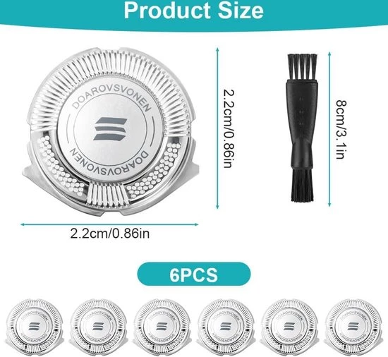 Onze scheerkoppen worden geleverd met in totaal 3 stuks, plus een reinigingsborsteltje. Het product heeft een diameter van 22 mm, ideaal voor een snelle en gladde scheerbeurt. Let op: dit zijn geen originele scheerkoppen, maar vervangende scheerkoppen die een voordelig alternatief bieden.