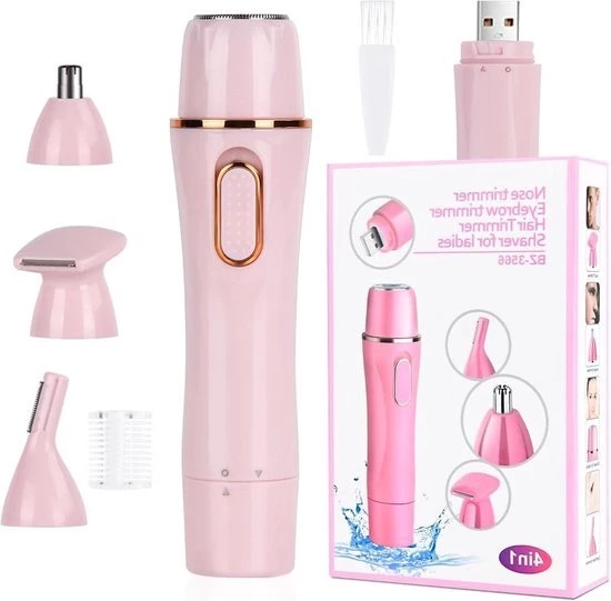 Wil je moeiteloos en pijnloos ontharen? Dan is dit 4-in-1 multifunctionele scheerapparaat voor vrouwen perfect voor jou. Met vier verwisselbare opzetstukken kun je haar overal op je lichaam verwijderen, inclusief je gezicht, wenkbrauwen, lippen, neus, benen, bikinilijn, vingers en meer. Dit scheerapparaat snijdt, brandt of irriteert je huid niet. Geniet direct van een zijdezachte huid!