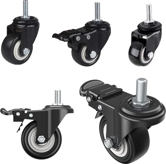 360 graden rotatie: De meubelwielen met rem kunnen 360 graden vrij draaien, wat zorgt voor gemakkelijke verplaatsing en snelle besturing, waardoor meubels flexibeler en gemakkelijker te dragen zijn. Een goede keuze voor mensen met beperkte kracht.