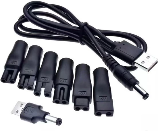 Deze oplaadkabel is geschikt voor diverse merken scheerapparaten, tondeuses, hondentrimmers, baardtrimmers en andere kleine huishoudelijke apparaten. Met 6 universele aansluitingen is dit de enige oplader die je nodig hebt voor al je apparaten.