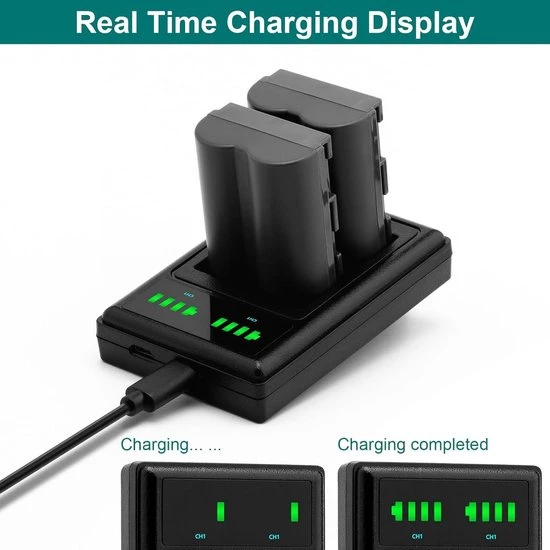 Deze set levert niet alleen extra stroom voor je camera, maar biedt ook het gemak van een LCD-dubbele USB-oplader waarmee je twee accu's tegelijk kunt opladen. Het ingebouwde, krachtige veiligheidscircuit beschermt tegen overladen, oververhitting en kortsluiting, zodat je je accu's met een gerust hart kunt opladen.