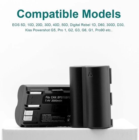 Wil je het maximale uit je Canon-camera halen? Dan is deze accu- en opladerset een absolute must-have. Compatibel met Canon BP-511, BP-511A, BP511, BP511A en diverse modellen zoals de EOS 5D, 10D, 20D, 30D, 40D, 50D, Digital Rebel 1D, D60, 300D, D30, Kiss Powershot G5, Pro 1, G2, G3, G6, G1, Pro90 en meer, ben je verzekerd van extra vermogen en meer foto's voor al je fotografie-avonturen.