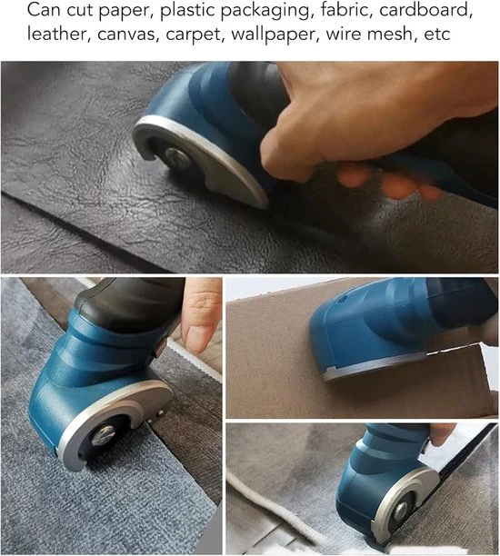 Elektrische schaar geschikt voor het knippen van papier, plastic verpakkingen, stof, karton, leer en meer.