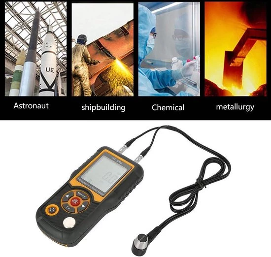 De ultrasone diktemeter gebruikt geluidssnelheidsmetingen om de dikte van verschillende materialen te meten, zoals staal, koper, aluminium, glas, kunststof, keramiek, hars, pvc en water. Dit maakt het een veelzijdig instrument voor uiteenlopende toepassingen.