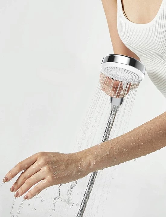 Geniet van een verfrissende douche-ervaring. Deze douchekop met stopfunctie biedt u de ultieme douche-ervaring en vermindert tegelijkertijd het waterverbruik. De hoogwaardige, waterbesparende douchekop is ontworpen om een perfecte waterdruk te leveren, zelfs bij lage druk, zodat u altijd kunt genieten van een verfrissende douche. Voordelen van deze douchekop Drie straalstanden: kies uit verschillende straalinstellingen voor een douche-ervaring op maat. Stopfunctie: Bespaar water en energie door simpelweg de waterstroom te onderbreken. Hoge druk: Verhoogt de waterdruk voor een verfrissende en krachtige douche. Universeel ontwerp: Geschikt voor de meeste douches, baden en tegelvloeren. Stijlvol chroom: geeft uw badkamer een moderne uitstraling. Productkenmerken Kleur: Chroom Materiaal: Hoogwaardig kunststof en staal Afmetingen: Standaardformaat, geschikt voor de meeste douches. Inclusief bevestigingsmateriaal voor eenvoudige installatie. Transformeer je dagelijkse douchebeurt in een luxe ervaring met deze multifunctionele douchekop. Perfect voor thuisgebruik en een milieuvriendelijke keuze voor bewust waterverbruik!