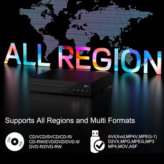Heeft u problemen met het aansluiten van uw oude dvd-speler op uw moderne tv? Bent u gefrustreerd omdat u geen eenvoudige oplossing kunt vinden voor uw entertainmentbehoeften? Geen zorgen meer! De dvd-speler met HDMI is er om uw kijkervaring te transformeren. Intuïtief en compact , met een strak design en een helder led-display , biedt deze Blu-ray-speler alles wat u nodig hebt om uw favoriete films en series in kristalheldere kwaliteit te bekijken. Dankzij de afstandsbediening met een bereik van 10 meter kunt u het apparaat moeiteloos bedienen, waar u ook bent. Met slechts vier knoppen en een USB-aansluiting is deze externe dvd-speler gebruiksvriendelijk en perfect voor elke kamer, zonder gedoe of concessies te doen aan de kwaliteit.