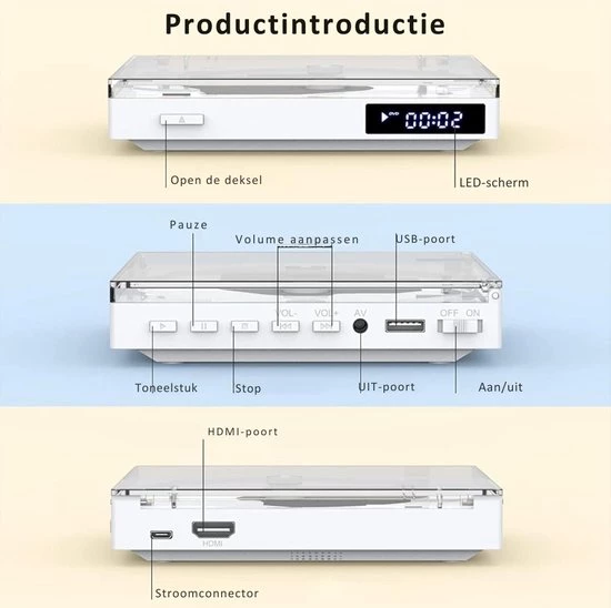 De dvd-speler met HDMI is de perfecte keuze voor wie op zoek is naar een compacte, veelzijdige en betrouwbare speler die geschikt is voor zowel binnen- als buitengebruik. Dankzij de superieure audio- en videokwaliteit, het draagbare ontwerp en de uitstekende compatibiliteit met diverse schijf- en bestandsformaten, biedt deze speler een ongeëvenaarde multimedia-ervaring. Of u nu een film wilt kijken, naar muziek wilt luisteren of uw favoriete digitale bestanden wilt afspelen, deze dvd-speler biedt alles wat u nodig hebt voor een optimale kijk- en luisterervaring.
