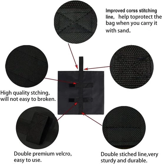 Verbeter de stabiliteit van uw pop-up tent of paviljoen met onze hoogwaardige gewichtzakken . Deze verzwaarde accessoires zijn essentieel voor elk buitenevenement, van tuinfeesten tot markten. Met hun stijlvolle zwarte design zijn ze niet alleen praktisch, maar ook esthetisch aantrekkelijk.