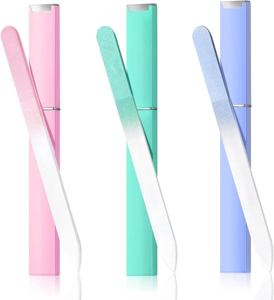 Ontdek de perfecte manicure- en pedicure- ervaring met onze set van 3 glazen nagelvijltjes . Deze hoogwaardige, dubbelzijdige geëtste vijltjes zijn ontworpen voor de verzorging van zowel natuurlijke als kunstnagels en vormen een essentiële aanvulling op je nagelverzorgingsroutine.