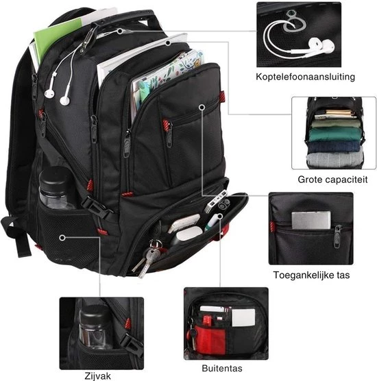 Grote laptoprugzak 17 inch - Waterdicht - Anti-diefstal - Zwart