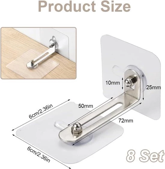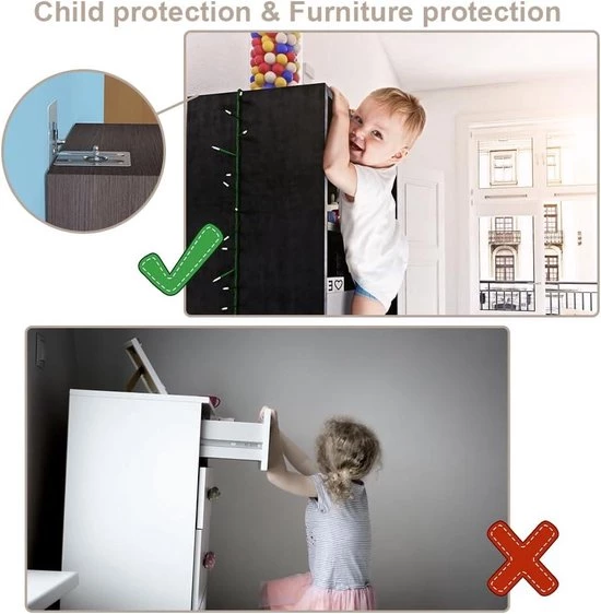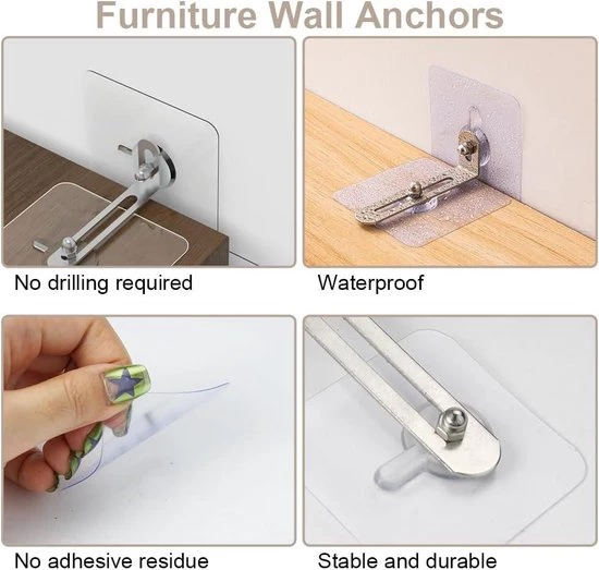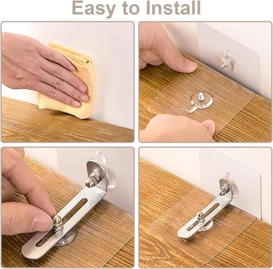 Met deze verstelbare meubelbeveiligingsset kunt u de ideale positie kiezen om ervoor te zorgen dat uw meubels veilig en stabiel blijven, zonder gaten te boren of ze te beschadigen. Dankzij de eenvoudige installatie is het een handig product voor elk huishouden.