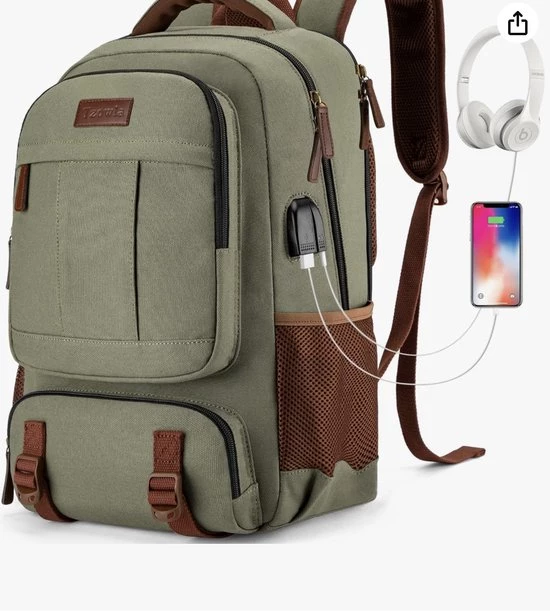 [USB- en hoofdtelefoonaansluiting] Deze rugzak beschikt over een externe USB-poort met een ingebouwde oplaadkabel, zodat je je telefoon gemakkelijk kunt opladen door je eigen powerbank aan te sluiten. De externe hoofdtelefoonaansluiting biedt ook gemakkelijke toegang voor het gebruik van oordopjes. (Batterij niet inbegrepen.)