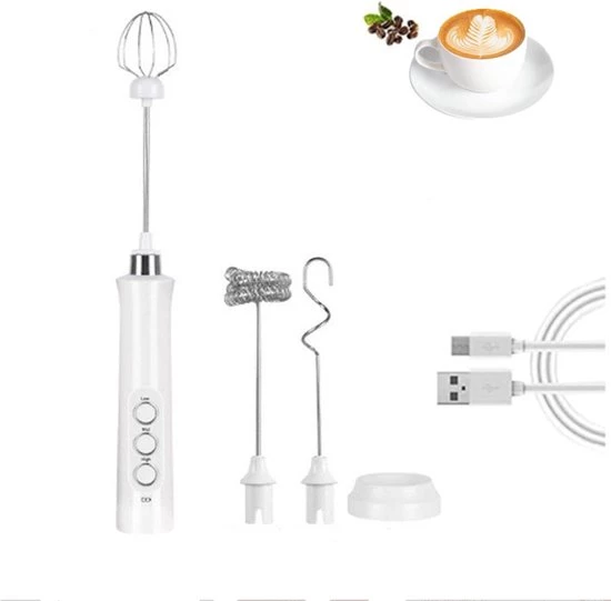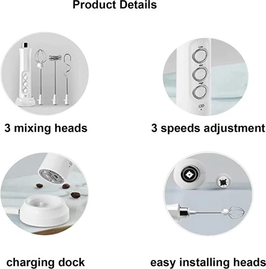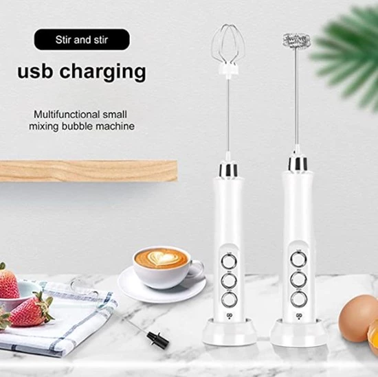 Voordelen van onze melkschuimer:Onze elektrische melkschuimer wordt geleverd met drie verwisselbare garde-opzetstukken: een ballongarde voor het kloppen van slagroom en eiwitten, een U-vormige garde voor het mengen van boter, olijfolie en melkpoeder, en een veergarde voor het opschuimen van melk en andere dranken. Dankzij de instelbare snelheid en de krachtige accu is dit apparaat betrouwbaar en duurzaam. Het handige laadstation zorgt ervoor dat uw melkschuimer altijd klaar is voor gebruik, en het compacte ontwerp maakt het gemakkelijk om hem overal mee naartoe te nemen.