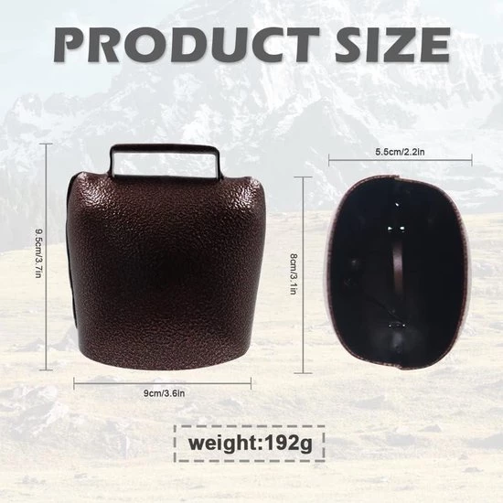 Voordelen:De grote koebel meet 9,5 x 8 x 5,5 cm en is gemakkelijk mee te nemen in je rugzak. De diameter van de metalen bal aan de binnenkant is ongeveer 0,4 cm, wat zorgt voor een aangenaam geluid en een langdurige echo. De bel is gemaakt van hoogwaardig metaal met een gelijkmatige vacuümcoating en een antieke messing afwerking die niet snel vervaagt.