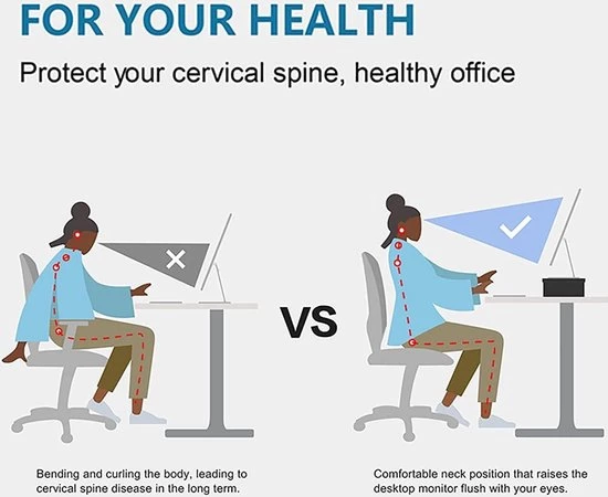 Deze monitorstandaard is een onmisbaar accessoire voor iedereen die urenlang achter de computer zit. Dankzij het ergonomische ontwerp en de stabiliteit is dit de perfecte oplossing om je monitor te verhogen en je houding te corrigeren.