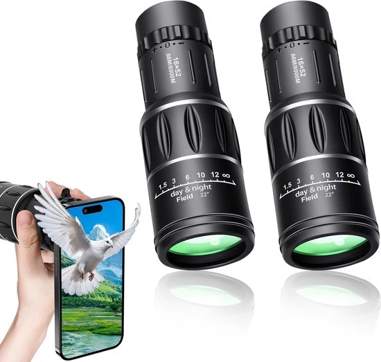 Ervaar de wereld om je heen in verbluffende helderheid en detail met de krachtige 16x52 HD monoculaire telescoop. Dit compacte en draagbare instrument is ideaal voor zowel volwassenen als kinderen en biedt een breed scala aan toepassingen, van vogelspotten tot reizen en sportevenementen. Met zijn hoogwaardige optiek en compacte ontwerp is deze monoculair de perfecte metgezel voor elke buitenactiviteit.