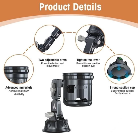 Dankzij de variabele hoek en het antislipontwerp biedt deze bekerhouder gemak en veiligheid tijdens het rijden. Hij is eenvoudig te installeren en geschikt voor diverse soorten dranken.