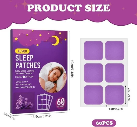Voordelen:De slaappleisters zijn eenvoudig aan te brengen en comfortabel. Breng de pleister voor het slapengaan aan op een schone, droge huid, zoals schouders, rug of bovenarmen. Verwijder hem 's ochtends. Regelmatig gebruik kan uw slaapkwaliteit effectief verbeteren en zorgen voor een continue, rustgevende slaap. Let op: Alleen voor volwassenen.