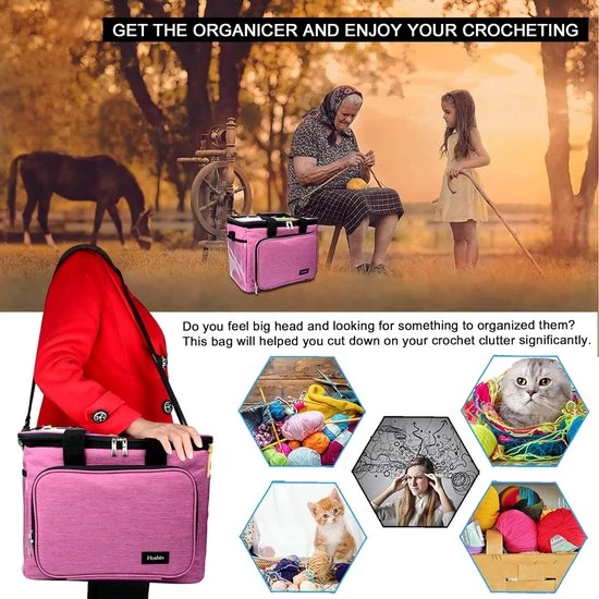 Houd je haakgereedschap op één plek: groot ritsvak aan de voorkant met elastische lussen voor brei- of haakaccessoires, 2 zij- en achterzakken voor het opbergen van ultieme tutorials, breiaccessoires, mobiele telefoon enz. Gereedschappen zijn gemakkelijk te vinden en op te bergen en je hebt alles bij de hand!