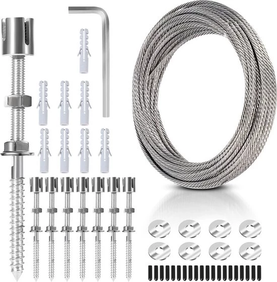 Ons product is gemaakt van 304 roestvrij staal, dat corrosiebestendig is en perfect geschikt voor buitengebruik. De staalkabel bestaat uit 7 strengen, waarbij elke streng uit 7 stalen draden van elk 3 mm dik bestaat. Dit zorgt voor de nodige stevigheid en tegelijkertijd voor de flexibiliteit van het product, waardoor u de kabel kunt aanpassen aan de groei van uw planten om ervoor te zorgen dat ze goed ondersteund en geleid worden.