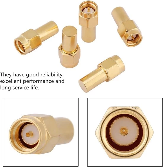 VoordelenDeze SMA-male RF-coaxiale terminators zijn van hoge kwaliteit en hebben een lange levensduur. Ze zijn perfect voor gebruik in diverse elektronische toepassingen, zoals draadloze communicatiesystemen, telecommunicatiesystemen en meer. Deze set van tien connectoren biedt voldoende mogelijkheden voor uiteenlopende projecten en toepassingen.