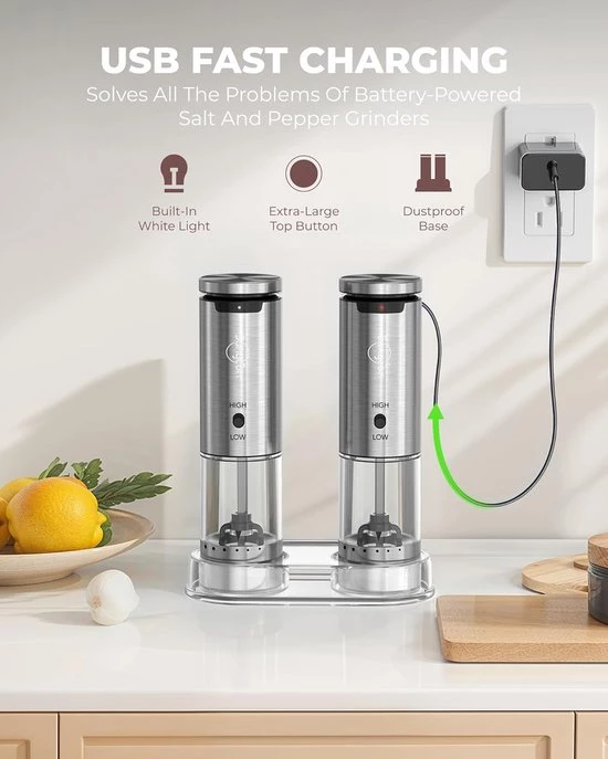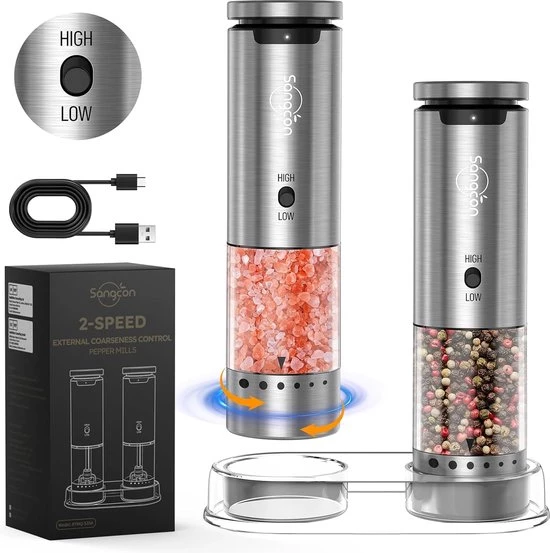 Geniet van gebruiksgemak en stijl met de Sangcon elektrische zout- en pepermolenset. Voeg deze slimme accessoire toe aan je keukengerei en ervaar het verschil bij elke maaltijd!