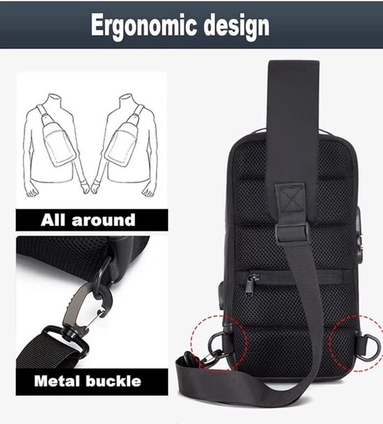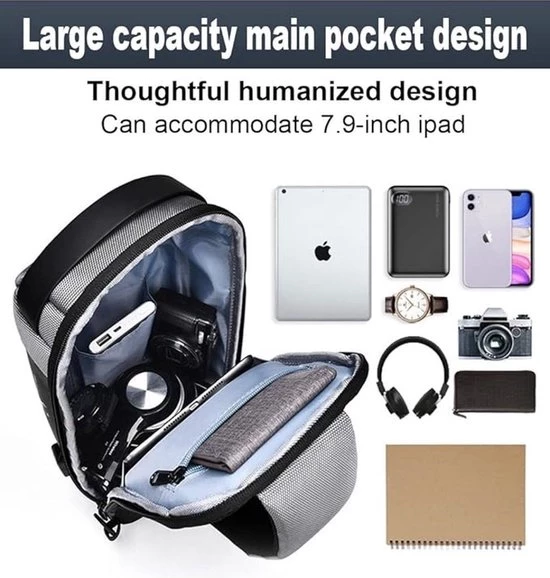 USB-oplaadpoort: Deze crossbody-rugzak voor heren en dames is voorzien van een USB-oplaadpoort (powerbank niet inbegrepen) om elektronische apparaten op te laden via je eigen powerbank. Je kunt je apparaten handsfree opladen, waar en wanneer je maar wilt, tijdens buitenactiviteiten en dagelijks gebruik.