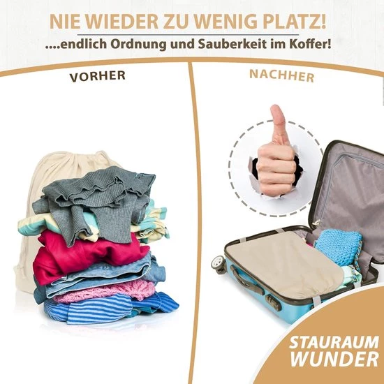 Ideaal voor onderweg: of het nu een reisgenoot, waszak of sporttas is. Ze helpen je bij het organiseren en opbergen van je spullen tijdens je reis. Ze beschermen ook je meest waardevolle spullen, zoals handtassen, schoenen of beddengoed. Natuurlijk zijn ze ook ideaal voor het opbergen van winterkleding, laarzen of sportuitrusting. Alleen met de hand wassen.