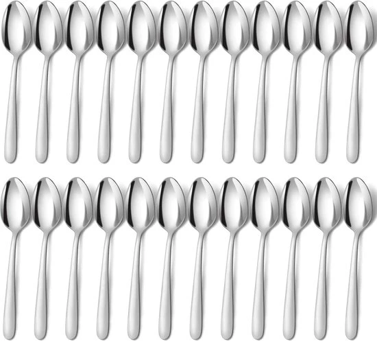 Roestvrij staal & duurzaam: Deze 24-delige soeplepelset is gemaakt van roestvrij staal van voedingskwaliteit, wat zorgt voor een duurzame lepelset die jarenlang meegaat. Bovendien zijn de lepels bestand tegen roest en corrosie, wat de gezondheid van het voedsel waarborgt.