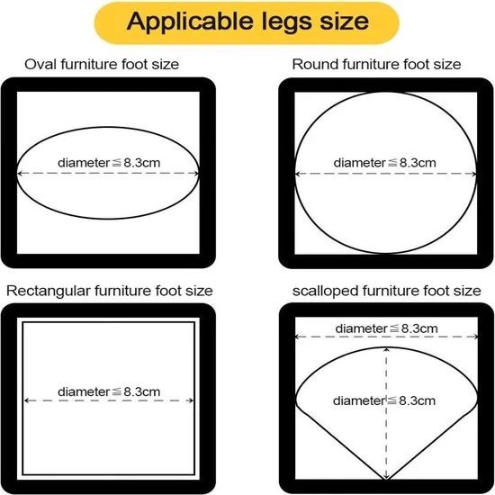 Veelzijdig: Deze bedliften zijn geschikt voor het verhogen van diverse soorten meubels, zoals tafels, stoelen, banken, kasten en bedden. Ze bieden een handige oplossing voor het verhogen van meubelpoten van verschillende vormen en maten.