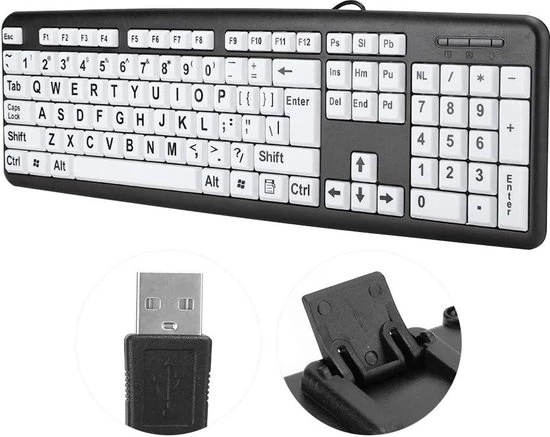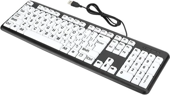Dit toetsenbord is speciaal ontworpen voor ouderen en mensen met een verminderd gezichtsvermogen. De grote letters zorgen ervoor dat het toetsenbord duidelijk leesbaar is en de ogen van ouderen niet belast. Het is een handig hulpmiddel voor iedereen die moeite heeft met het lezen van kleine letters op een standaard toetsenbord.