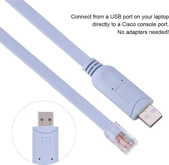 De USB2.0 Male naar RJ45 Male CAT5 Seriële Console Platte Kabel is de perfecte oplossing om je laptop rechtstreeks op een consolepoort aan te sluiten. Geen gedoe met adapters, gewoon plug and play!