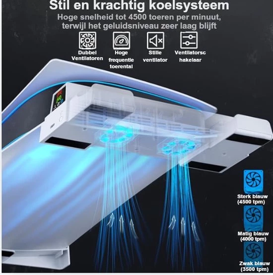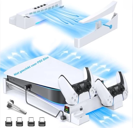 Het compacte en stijlvolle ontwerp van de ventilator past perfect bij de strakke look van de PS5. Het is niet alleen functioneel, maar ook een esthetische aanvulling op je gaming-setup.
