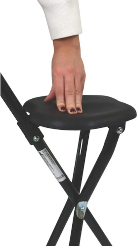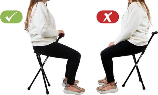 Opvouwbare zitting : De opvouwbare zitting (21,5 x 19,5 cm) is eenvoudig uit te klappen en kan als stoel dienen en net zo eenvoudig worden ingeklapt om de wandelstok weer te gebruiken. Let op: gebruik de handgreep niet als rugleuning.