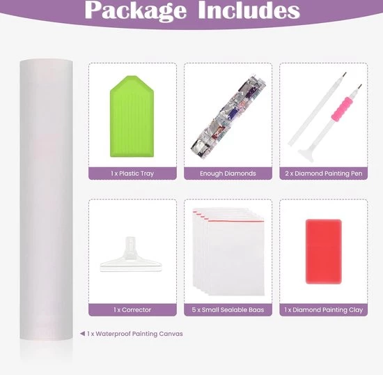 Voordelen:Met onze diamantschilderset kun je urenlang creatief plezier beleven aan het creëren van een prachtig kunstwerk. Het is niet alleen een aanwinst voor je interieur, maar ook een prachtig cadeau voor je dierbaren.